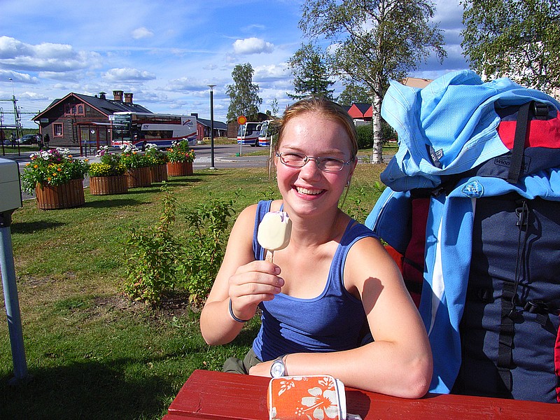 Auch hier oben in Lappland auf 67° 8' nördl. Breite schmeckt das Eis: Guten Appetit, Franzi!