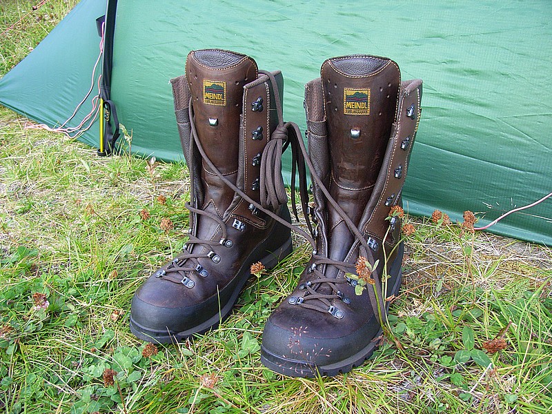 Die eigentlich optimalen Sarekstiefel, leider etwas zu weit geschnitten für den Besitzer ...