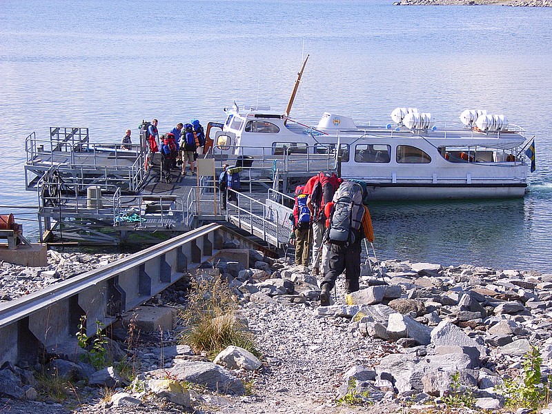 Unten am Schiffsanleger wartet bereits das Fährboot, das uns über den Akkajaure bringen soll.