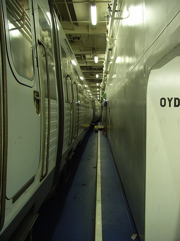 Der Zug im Bauch der Fähre über den Fehmarnbelt ...