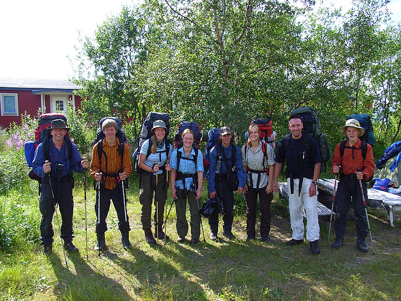 Nun wird es Ernst! Alle Globetrotter sind zum Abmarsch bereit: Uli, Florian, Diana, Franzi, Henrik, Patsy, ich und Johannes (von links nach rechts)
