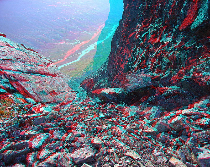Beim Abstieg vom Kuoper gab es diesen Blick in die Tiefe (Anaglyphenbild).