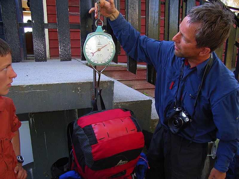 Die Rucksäcke werden gewogen.