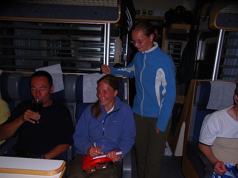Globi-Geburtstags-Pulverwein: "No, this is no alcohol, it's an instant drink!" (der Schaffner gab sich dann zufrieden)