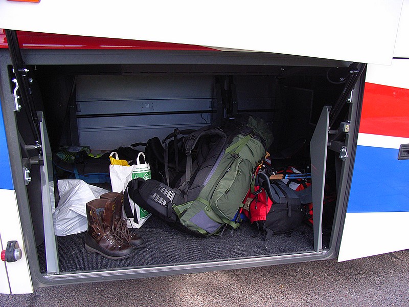 Auch die Stiefel und mein "grünes Monster" kommen natürlich mit. Wir haben ein eigenes Rucksackfach für uns!